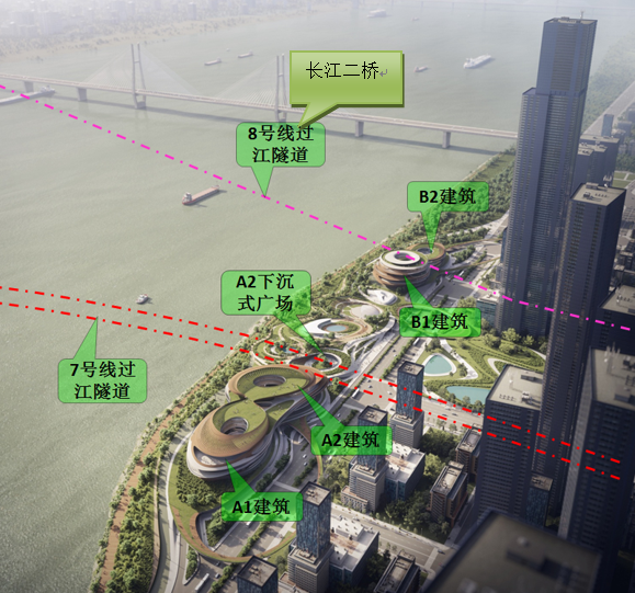 筏板、承臺(tái)、樁與區(qū)間隧道空間位置關(guān)系圖(地鐵7號(hào)線、8號(hào)線)